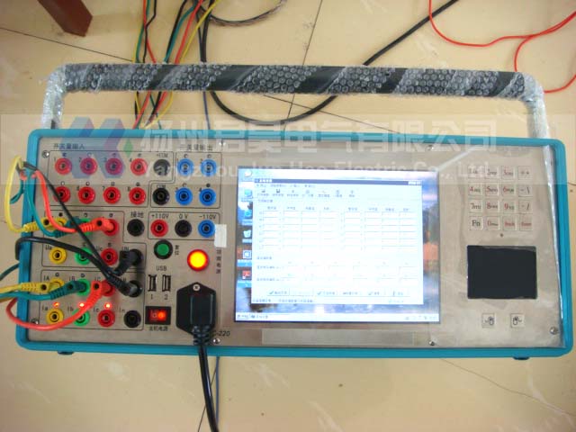 2、 單機獨立運行,裝置內置工控機采用高速度CPU和128M內存WindowsXP操作系統,通過8.4寸 TFT 真彩大屏幕液晶顯示屏由觸摸鼠標和小鍵盤進行操作,全套智能操作中文顯示,可對現場各種繼電器,保護及安全自動裝置進行檢定,并可模擬各種大型復雜的瞬時性、永久性、轉換性故障進行整組試驗。