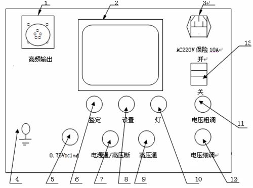 ⑵液晶顯示屏:顯示測量數據;電壓整定數值;定時提醒;倍壓節數等,顯示內容與您的操作有關。