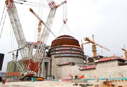 田灣核電4號(hào)機(jī)組穹頂?shù)跹b轉(zhuǎn)入設(shè)備安裝階段